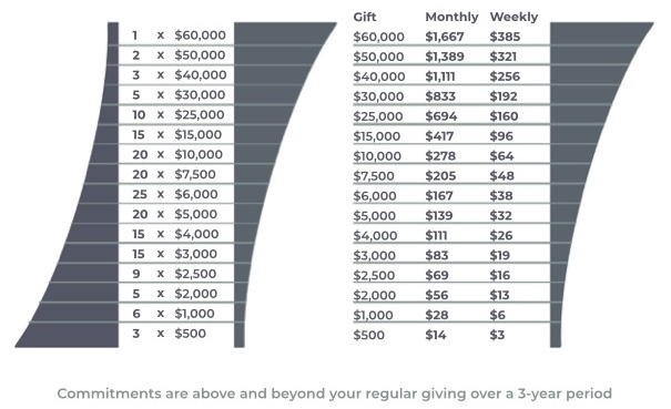 Together, we can achieve our goal of raising $1.65M over the next three years with the expectation that we’ll finance the remaining balance. Every gift, big or small, makes it possible for us to Build the Kingdom for years to come.
