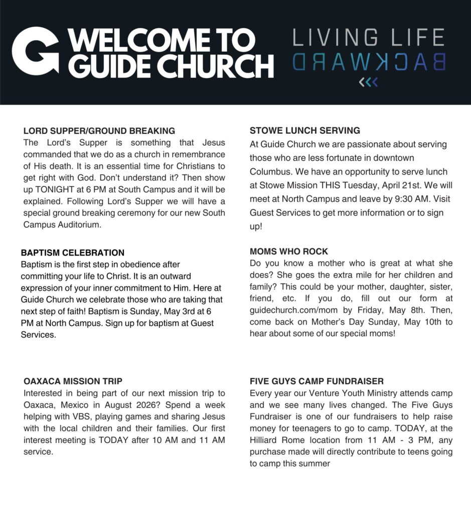 Below is a digital copy of our current Sunday Service Guide